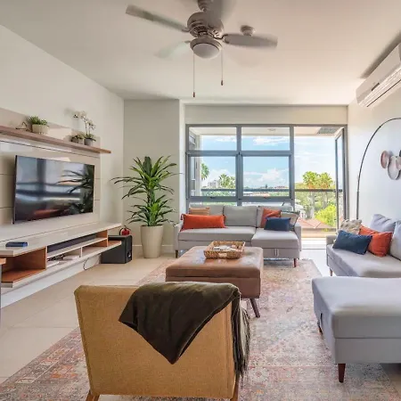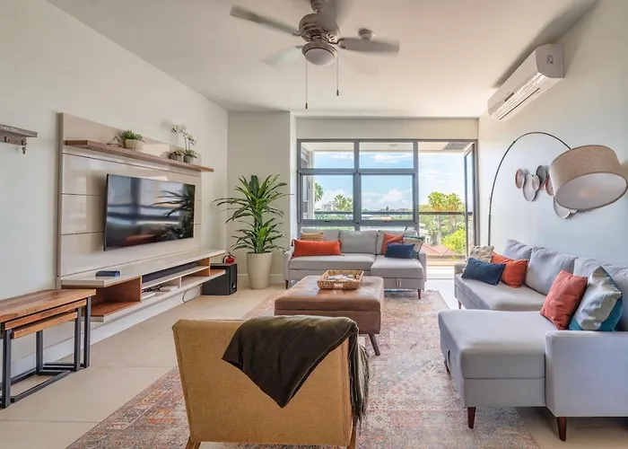 The spacious 160 m² Airy Modern 2Br Condo Rooftop Pool Kingston includes a terrace and is located approximately a 10-minute drive from the Barbican.